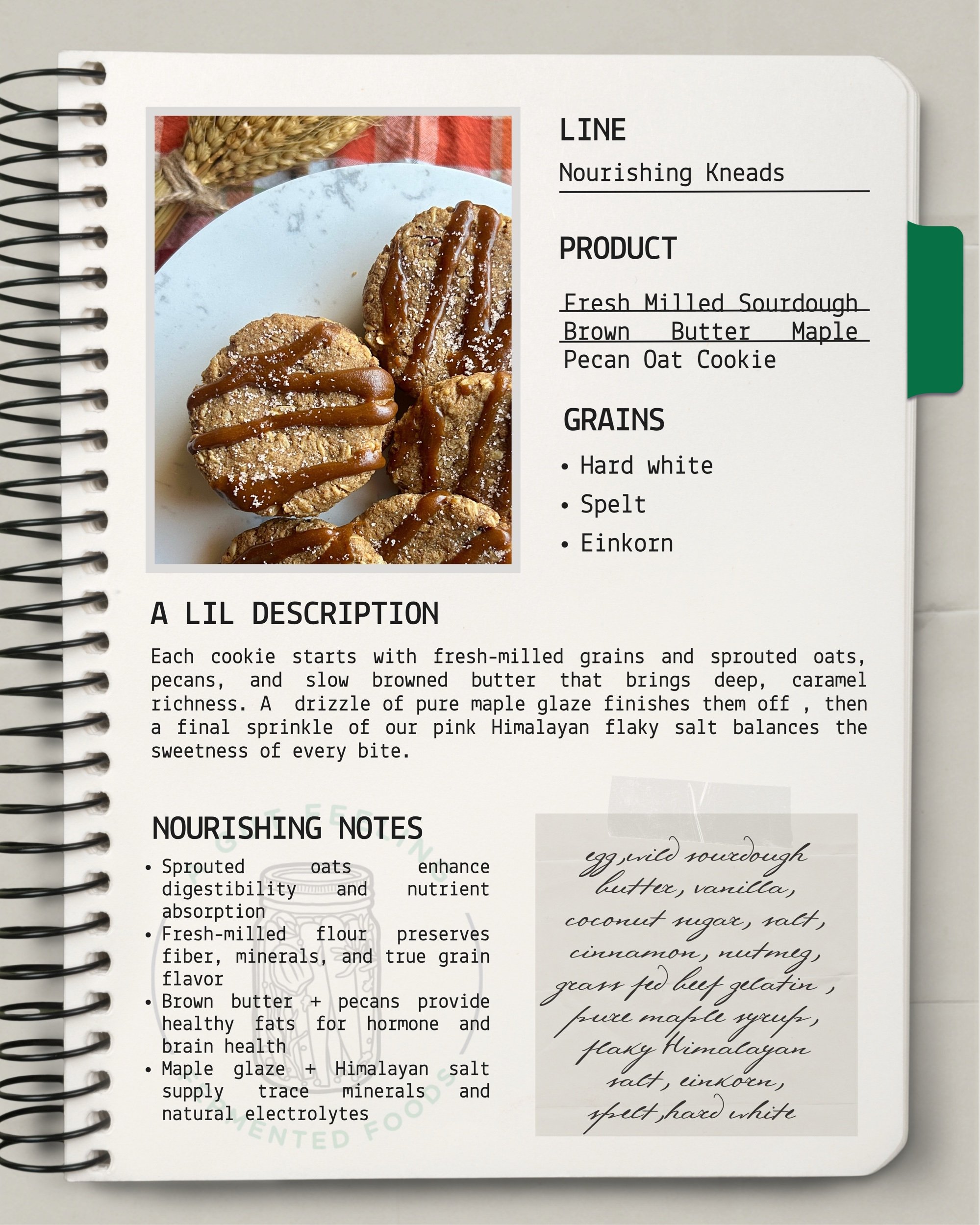 Each cookie starts with fresh milled grains and sprouted oats, pecans, and browned butter that brings deep, caramel richness. A drizzle of pure maple glaze finishes them off, then a final sprinkle of our pink Himalayan flaky salt balances the sweetness of every bite.